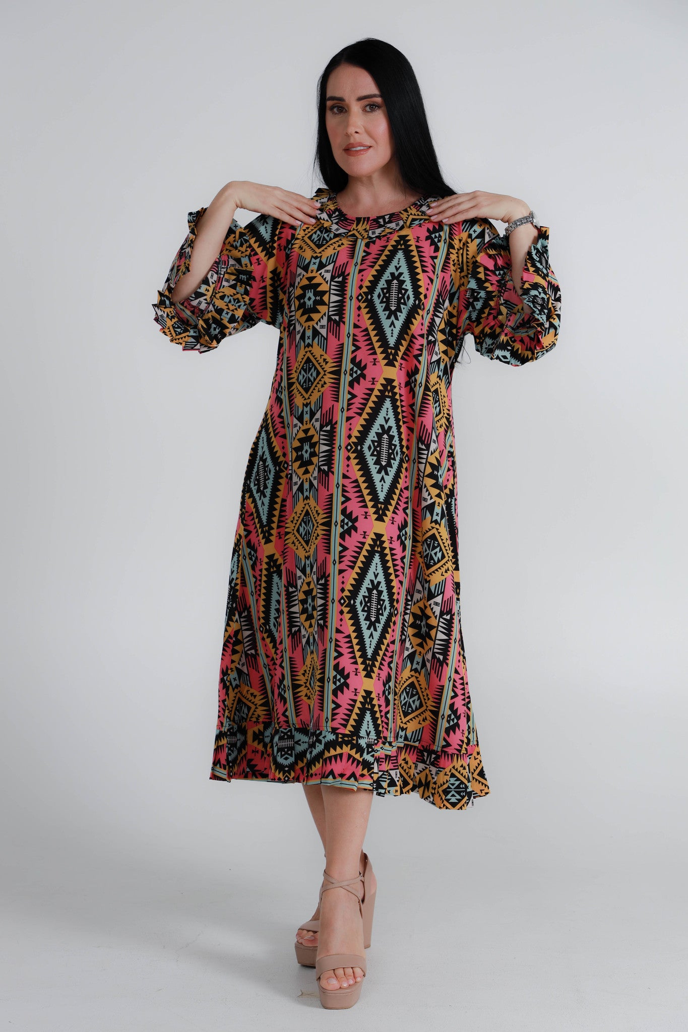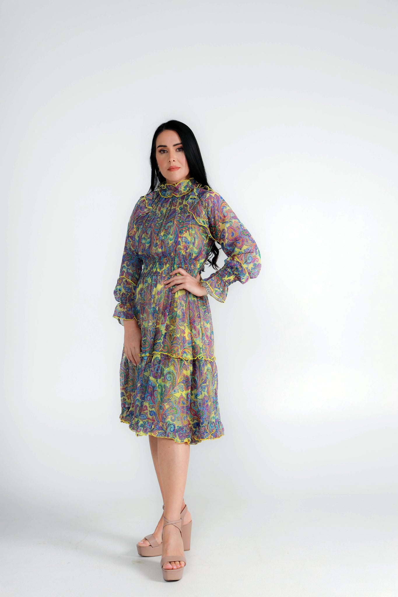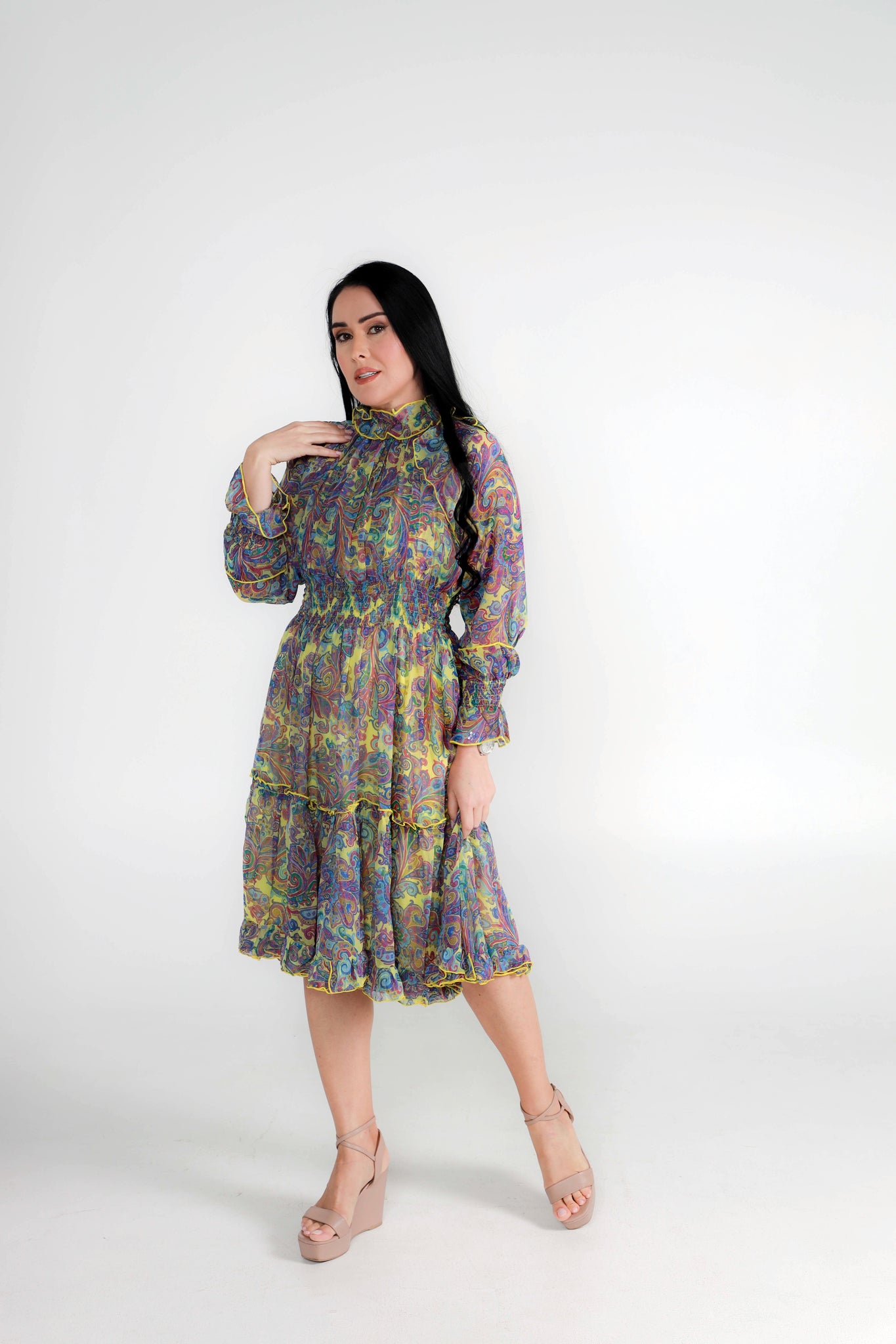 Multicolor Chiffon Dress with Frills